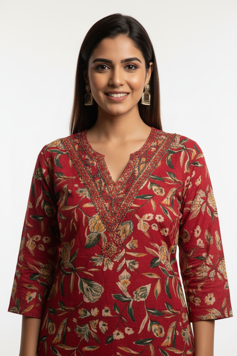 Step out in style with this elegant and comfortable printed kurti, perfect for the modern Indian woman. Crafted from a soft, breathable fabric, this knee-length tunic offers a relaxed yet stylish fit that keeps you comfortable all day long. The intricate floral or paisley print adds a touch of sophistication, making it an ideal choice for a casual day out, a college look, or a relaxed office environment.